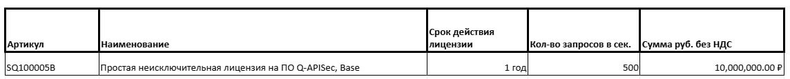 Для расчета лицензии Q-APISec Plus (более 500 RPS) обратитесь, пожалуйста, к нашим специалистам для формирования коммерческого предложения согласно необходимому вам количеству RPS.